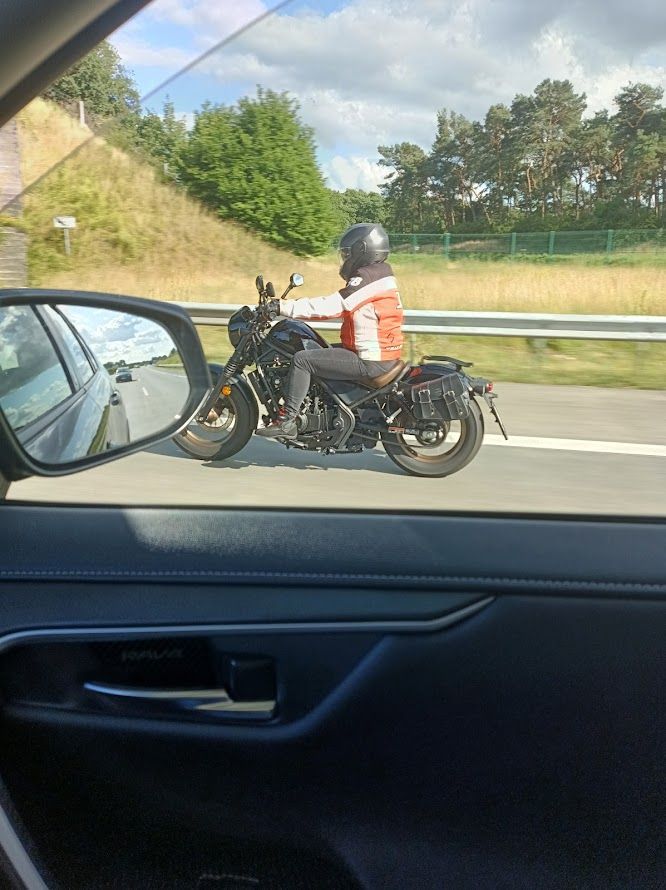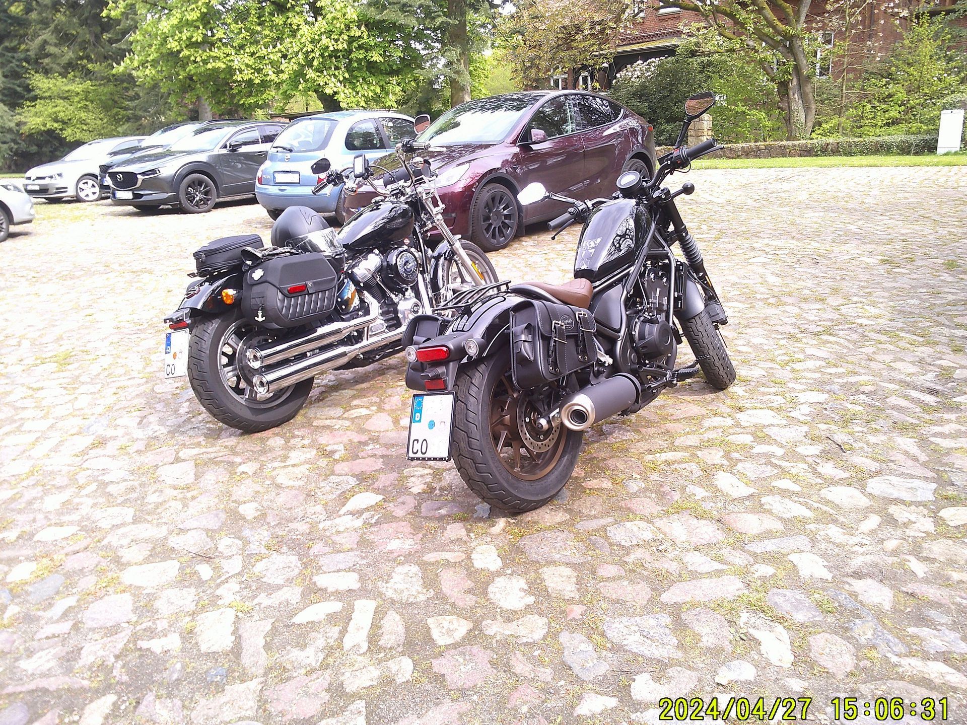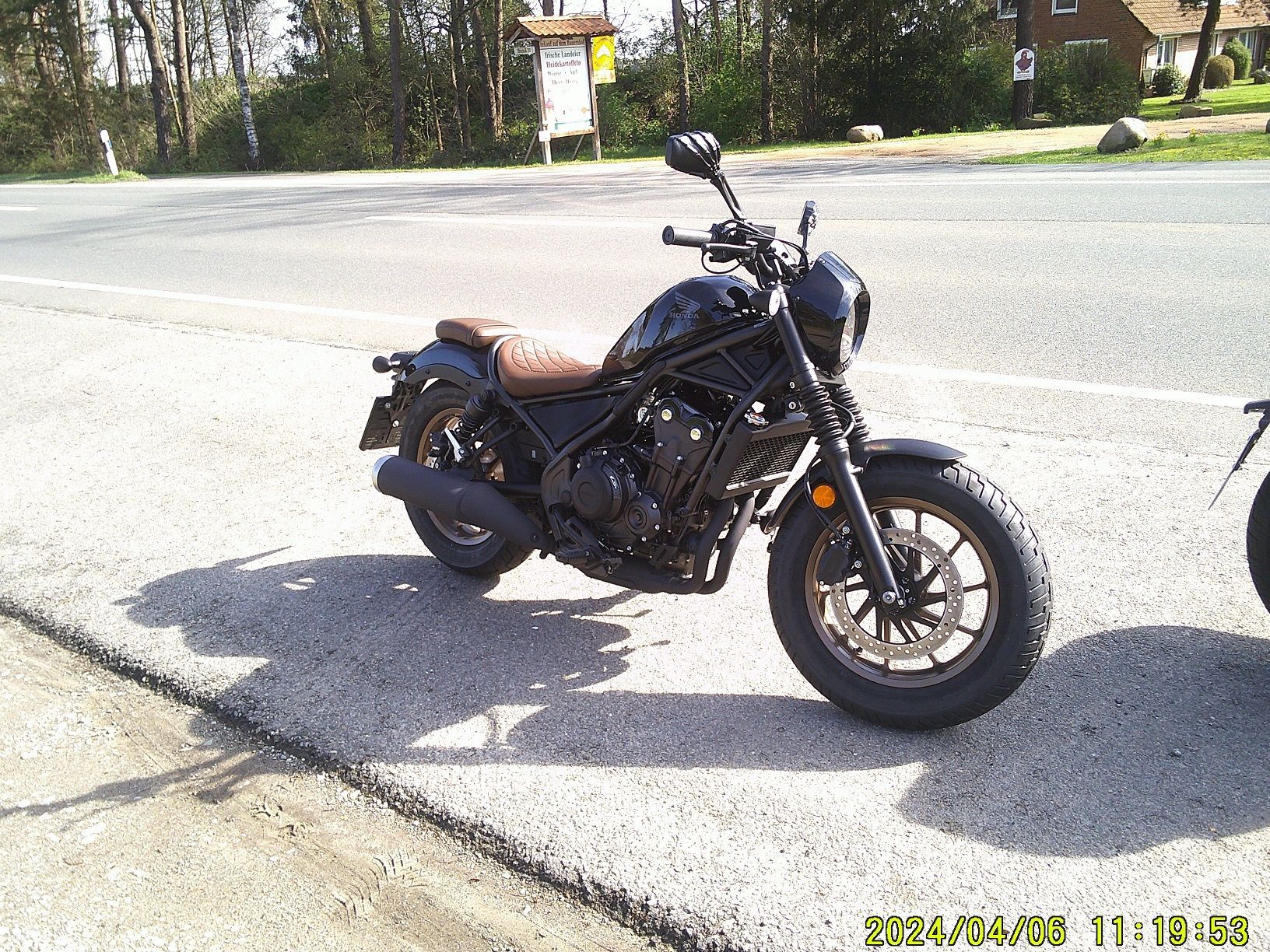 Heute sind wir eine schöne Tour gefahren. Nun hat die Rebel 295 Kilimeter runter. Die Maschine läuft perfekt und hat ein super Sound. Echt klasse egal ob die Maschine steht (Leerlauf) oder auch beim Fahren, der Soud der Maschine ist immer perfekt. Super Arbeit von Honda.