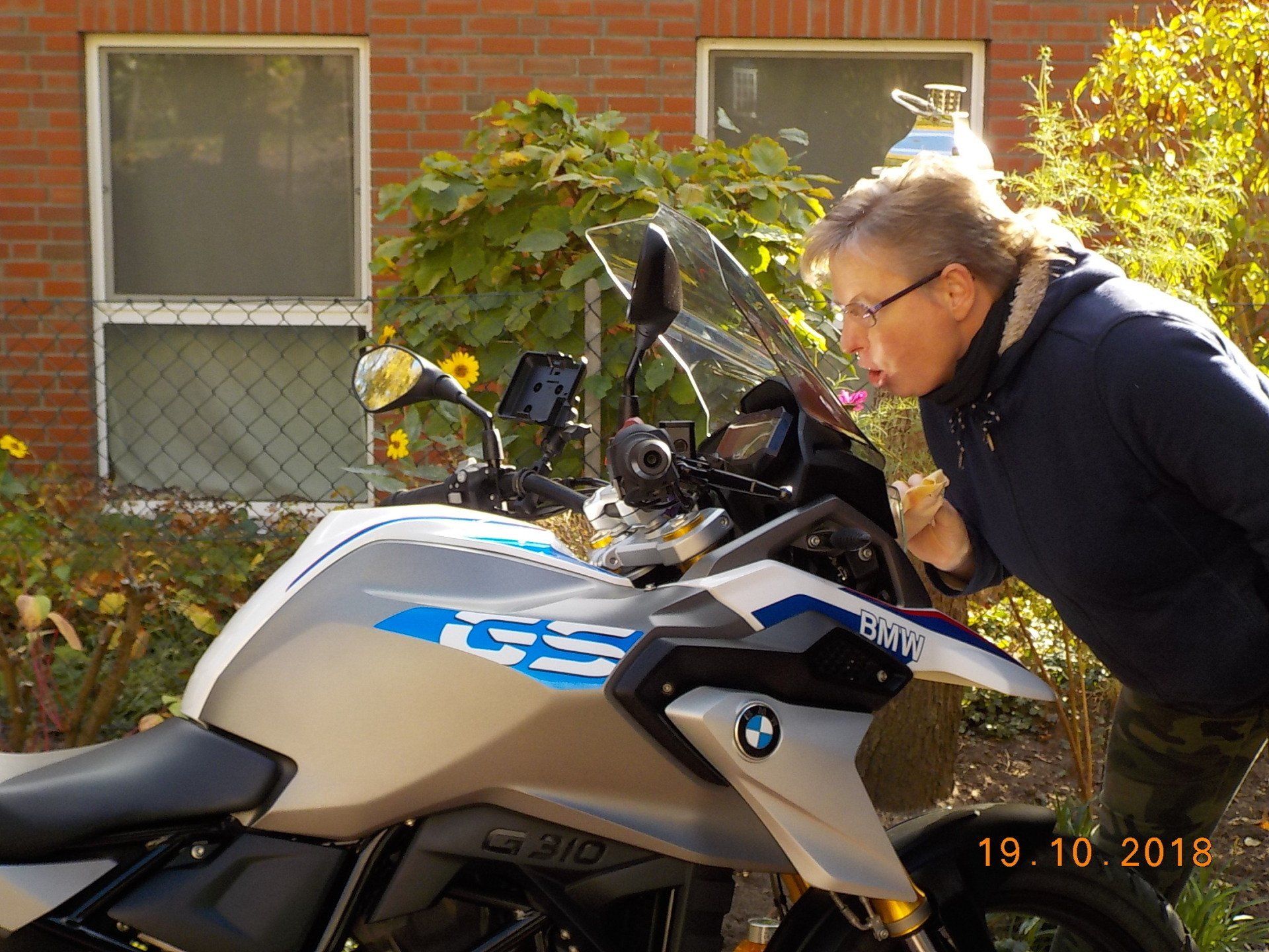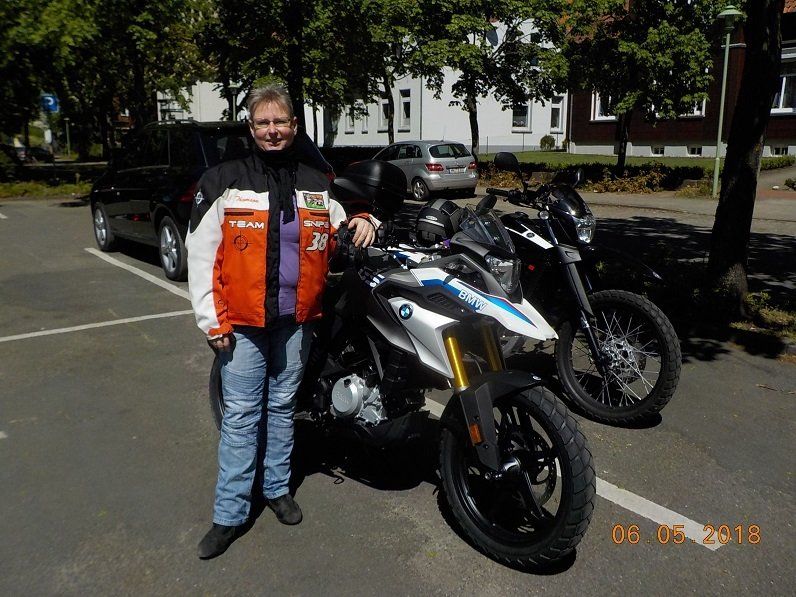 Conny fährt eine BMW G 310 GS und eine Honda CMX 500 Rebel. Ich fahre eine Harley Davidson. Wir sind sehr zufrieden mit unseren Maschinen und es bringt viel Spaß mit ihnen zu fahren. Conny hat ihre 310 GS am 04.05.2018 zu ihrem Geburtstag mit 3 km bekommen.